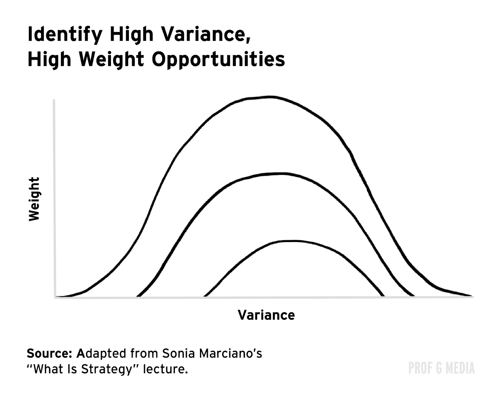 NYU professor Sonia Marciano coined the idea of variance: To achieve success, the best strategy is to focus on the areas where there are the biggest gaps between the best and the worst. Scott has written about it multiple times.