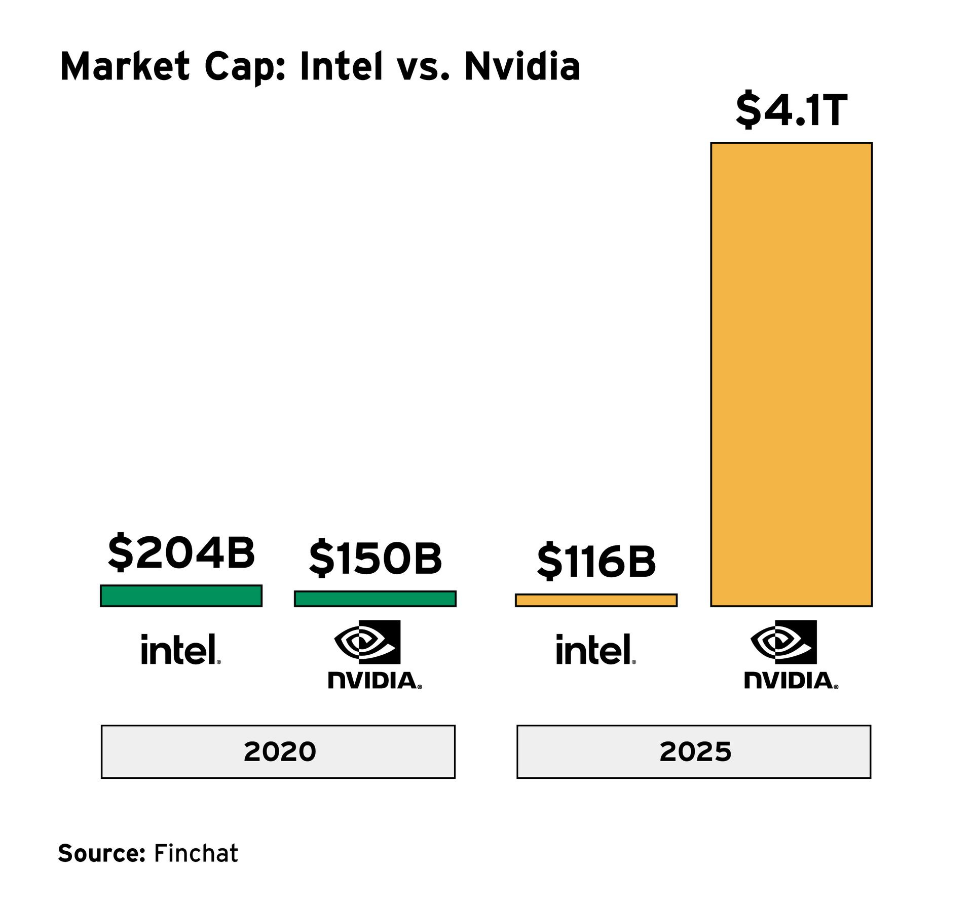 Nvidia is investing $5 billion for a 4% stake in Intel, buying shares at $23.28 each — above the $20.47 per share the U.S. government paid for its 10% stake last month.